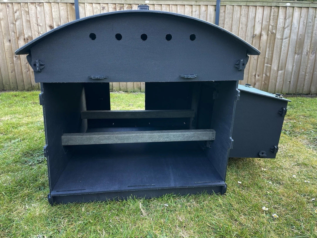 The fully removable back door makes cleaning quick and easy. The entire coop can be disassembled for deep cleans and flat-packs for storage or transport.